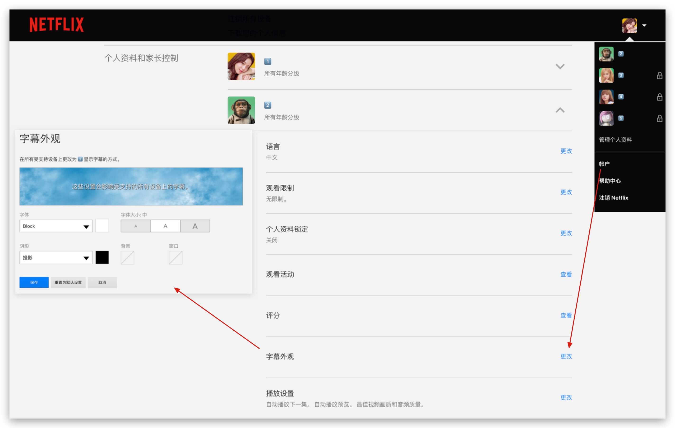 注意- 电视或电视流媒体设备上,Netflix 会基于您的位置和语言设置显示 5 到 7 种相关的语言