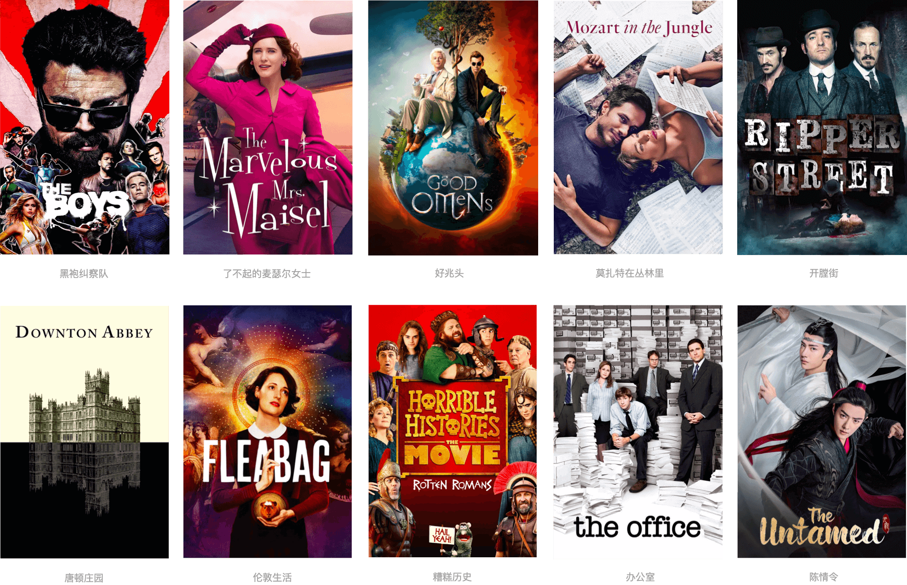 - 也包含比如「伦敦生活」、「糟糕历史」、「唐顿庄园」等的引入剧集,甚至「山河令」、「陈情令」都有上映
