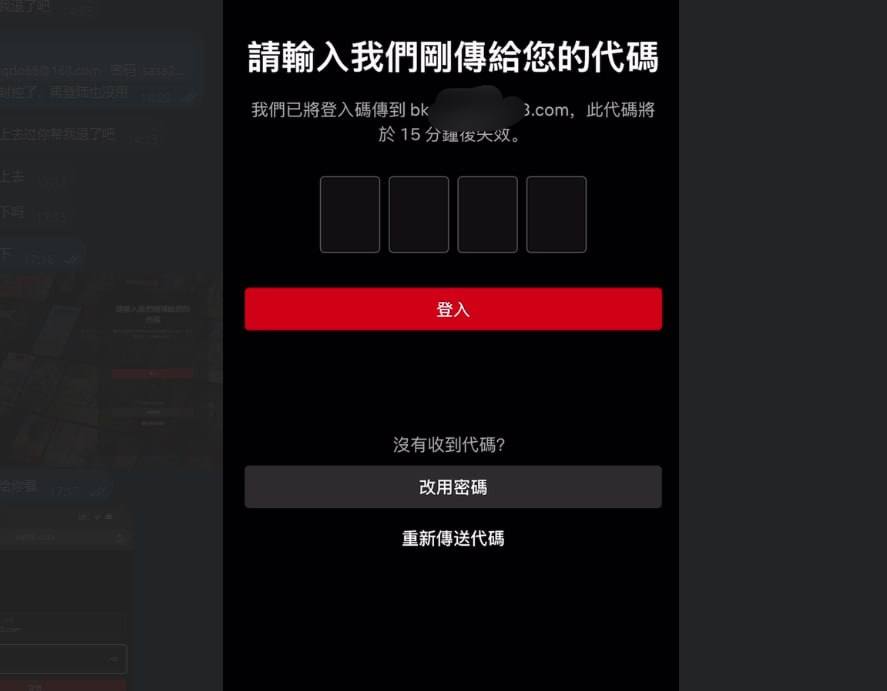 3,点击"传送登入码"后,在客服那里获取的4位数代码,输入登录即可